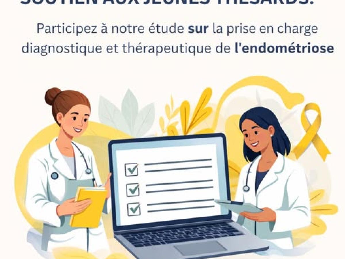 Dans le cadre de leurs travaux de thèse en médecine générale, des futurs docteurs Noémie Ratajczak et Flavie Hosdez (Faculté de Médecine de Lille) mènent une étude sur la prise en charge diagnostique et thérapeutique de l’ *endométriose*.